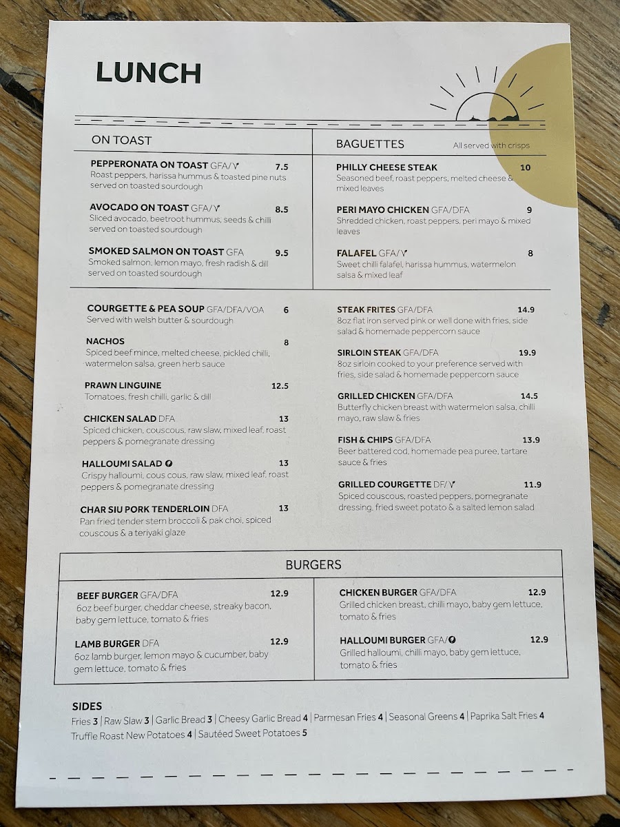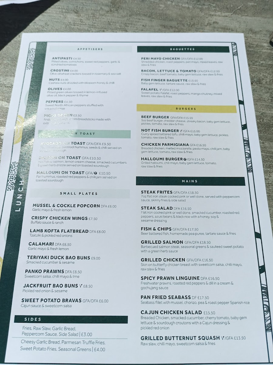 The menu reflects a fresh, modern approach to classic British and Mediterranean-inspired dishes. Standout starters include crispy calamari and halloumi fries, ideal for sharing while enjoying a cocktail at sunset. The mains cater to diverse preferences, with options ranging from locally sourced seafood like the pan-fried sea bass to comforting favourites such as gourmet burgers and vegan-friendly grain bowls.